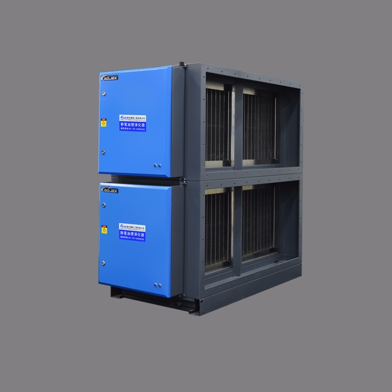 4、油煙凈化器在高壓靜電場的作用下,電極吸附的污染物達到一定的量時,就需要對凈化器進行人工或自動化機械清洗,如不及時清洗,吸附的大量污染物使電極出現閃絡放電或閉暈現象。