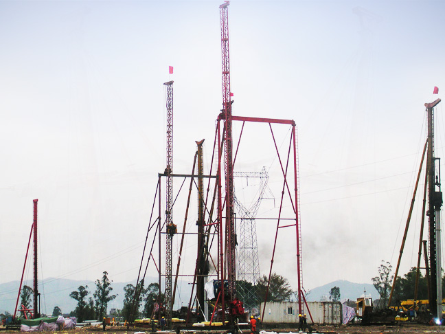 SDJ系列塑料排水板樁機可分為門架式、三點支撐式兩種支承形式,底盤行走機構可分為鋼軌式、履帶式、液壓步履式三種。其中鋼軌式插板機用于較軟地質,履帶式用于偏硬地質,移位靈活便捷,液壓步履式行走牢穩,平臺可正反180度回轉。立柱采用井字架結構,強度高、性能穩定。動力系統可根據用戶激振力需求,一般選用DZ-40Y型號以下規格的振動錘將插管打入孔內完成施工作業。